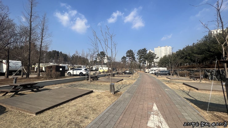 평소라면 오토캠핑장에 텐트가 가득 차서 빈 곳이 보이지 않았을 텐데, 눈보라와 강한 추위 탓인지 빈 곳은 몇 군데밖에 보이지 않았다. 추운 날씨에도 불구하고 캠핑을 즐기는 시민들의 열정이 캠핑장을 녹이는 듯 합니다.